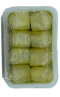 Cœurs d'artichauts préparés pour que vous puissiez former une fleur facilement et sans la casser. Artichauts soigneusement sélectionnés, récoltés le jour même de leur conditionnement, sans colorants ni conservateurs. Tendre et frais.